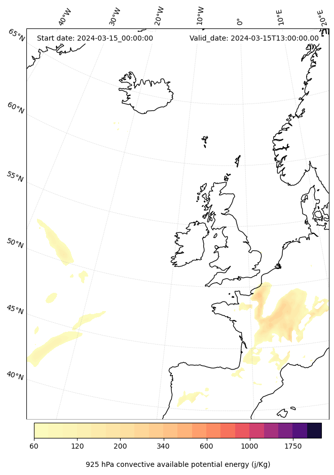 - Maximum CAPE (J/Kg)