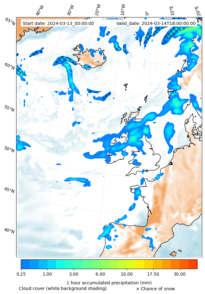 - Snow mixing ratio (g kg¯¹)