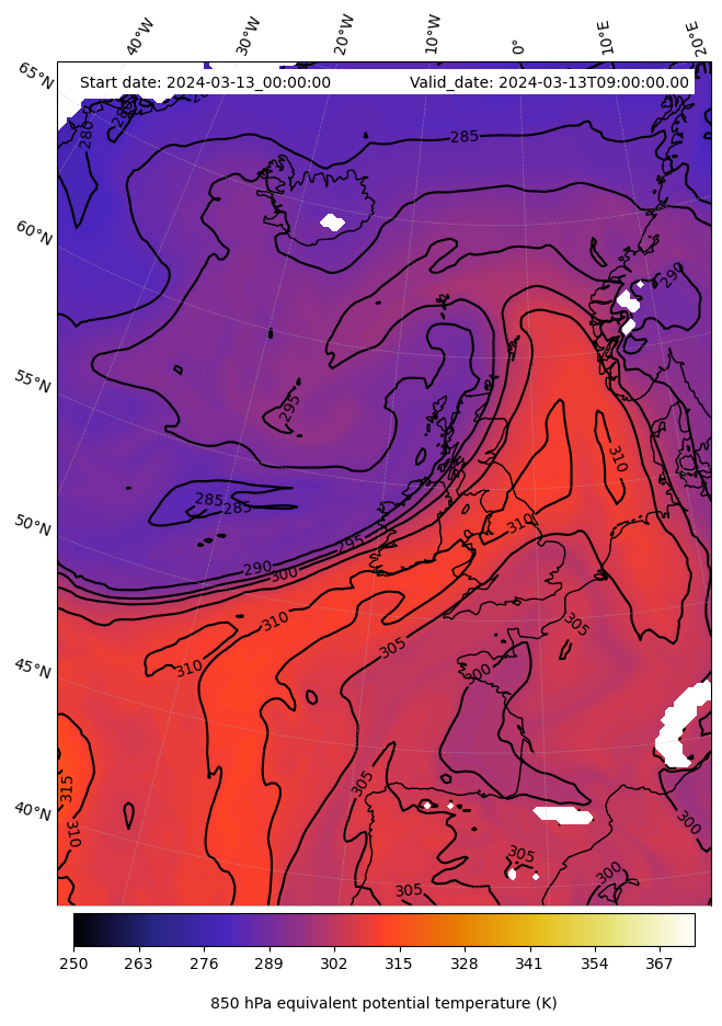 - Equivalent Potential Temperature (K)