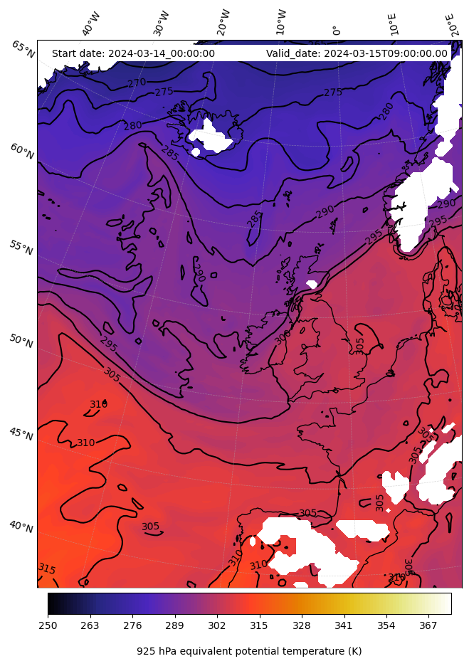 - Equivalent Potential Temperature (K)
