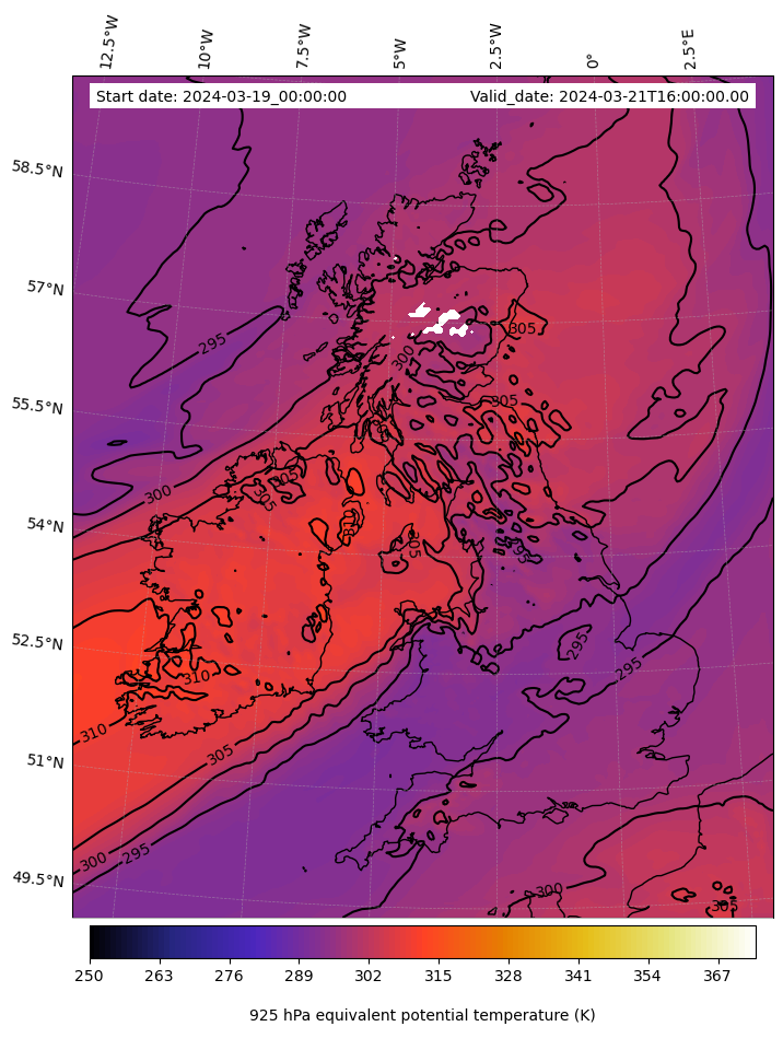 - Equivalent Potential Temperature (K)