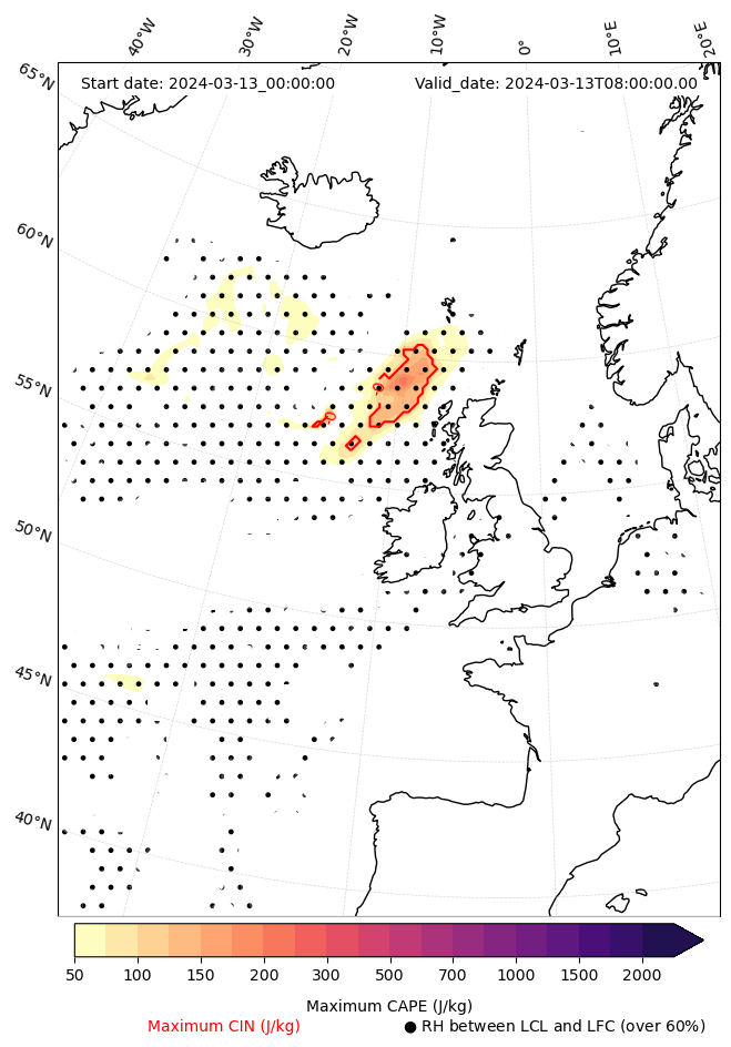 - Maximum CAPE (J/Kg)