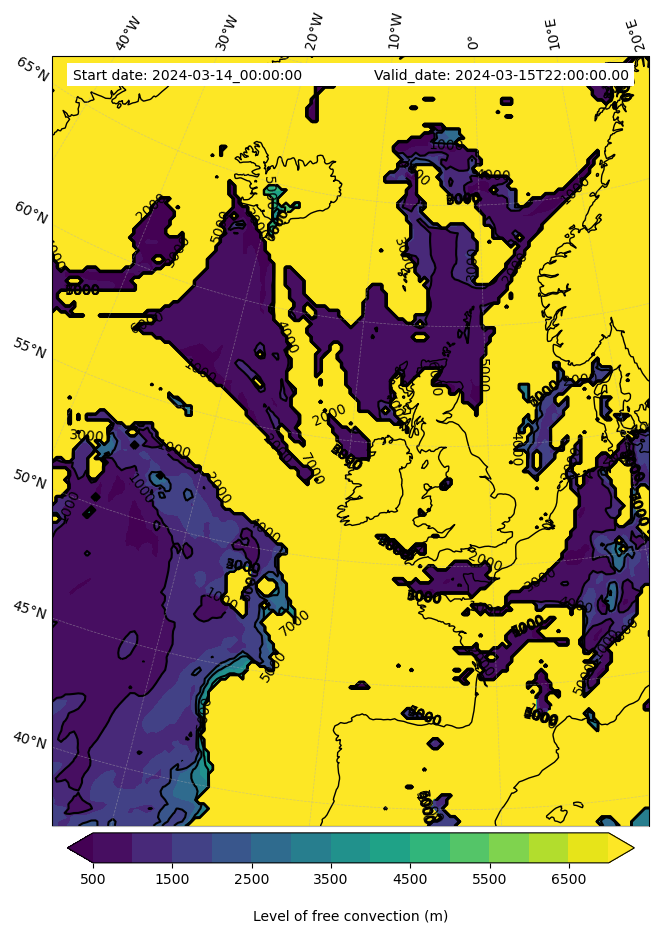 - Level of free convection (m)
