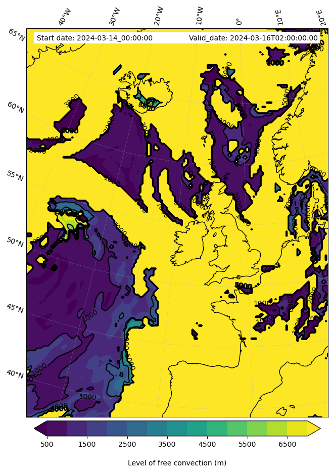 - Level of free convection (m)