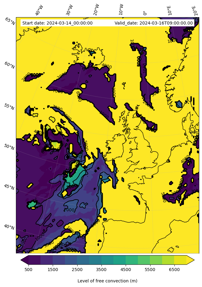 • Level of free convection (m)