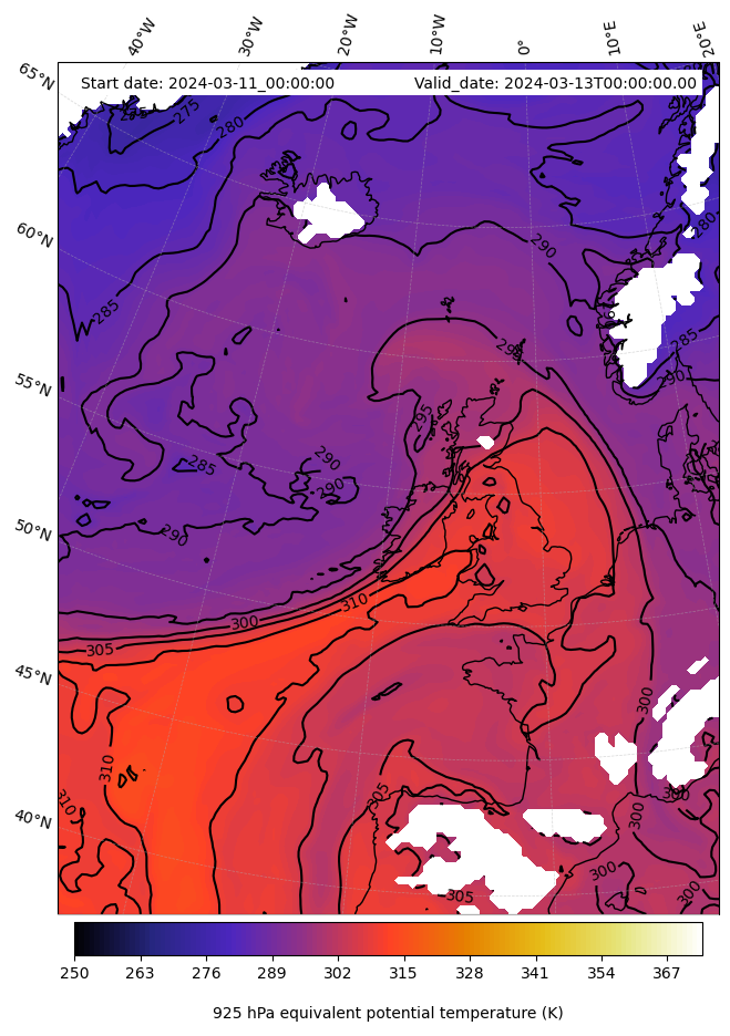 - Equivalent Potential Temperature (K)