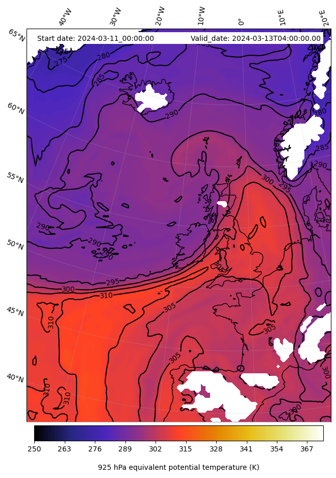 - Equivalent Potential Temperature (K)