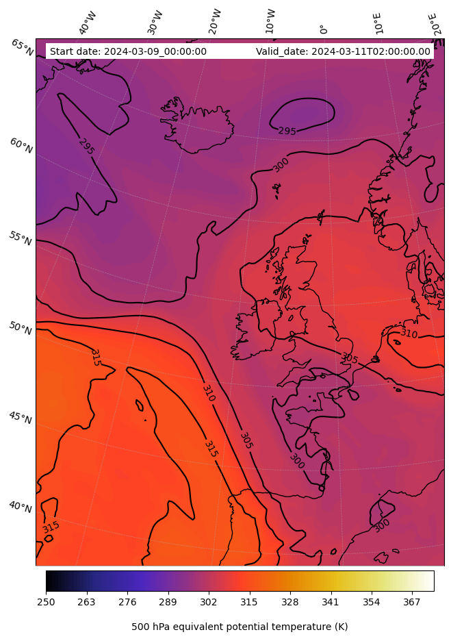 - Equivalent Potential Temperature (K)