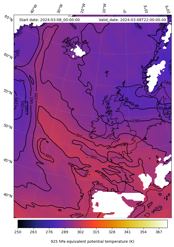 - Equivalent Potential Temperature (K)
