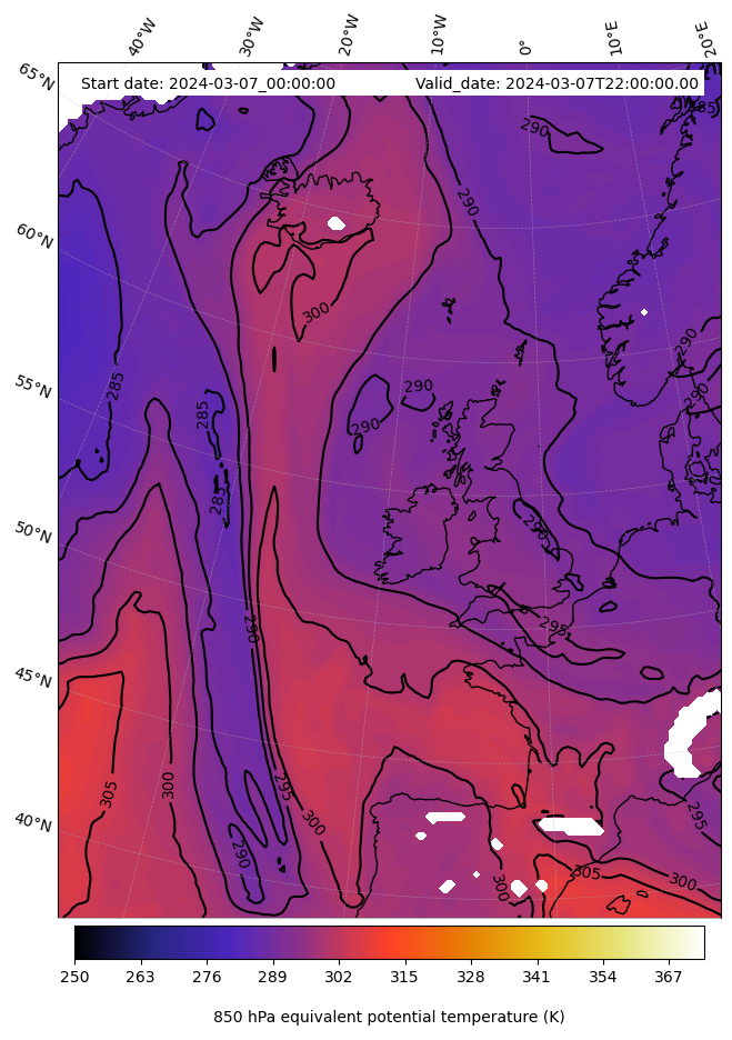 - Equivalent Potential Temperature (K)