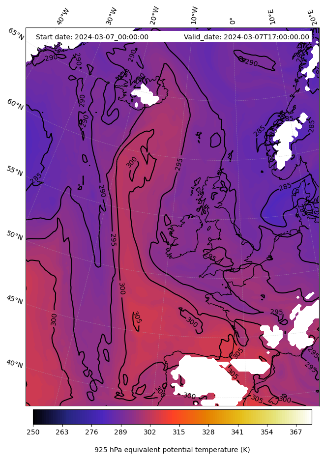 - Equivalent Potential Temperature (K)
