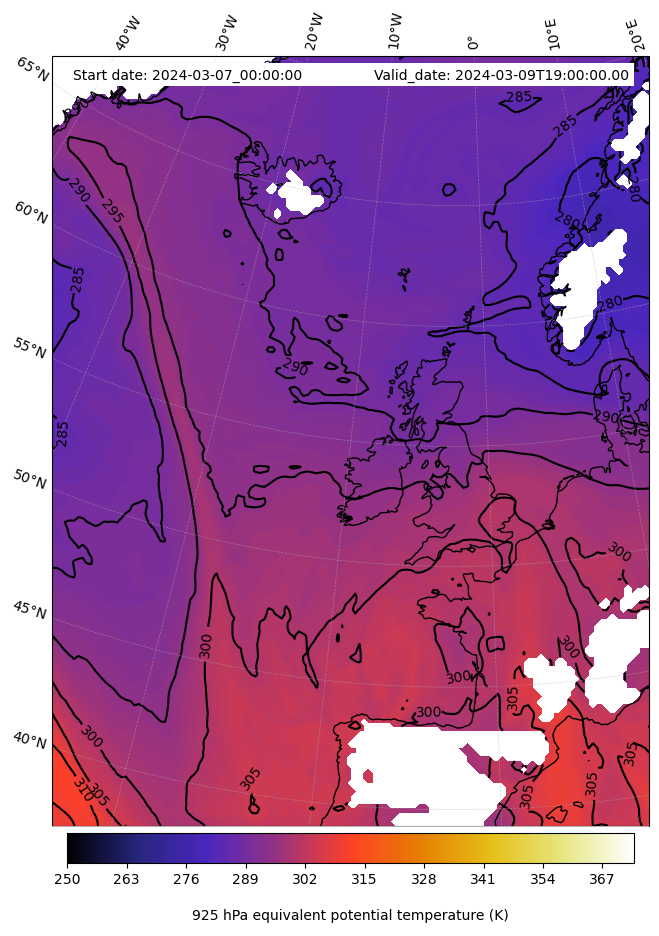 - Equivalent Potential Temperature (K)