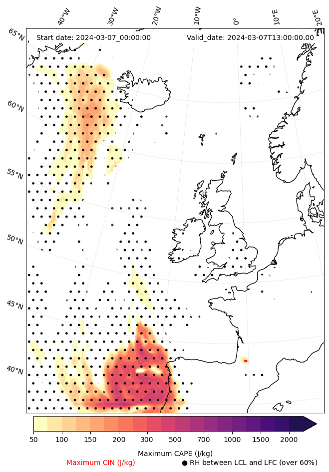 • Maximum CAPE (J/Kg)