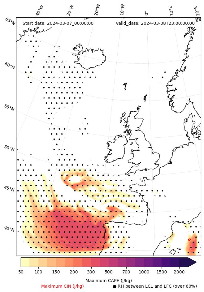 - Maximum CAPE (J/Kg)