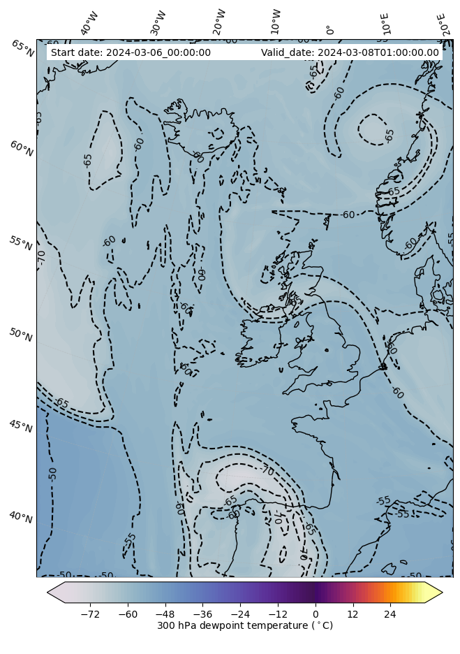 - Water vapor mixing ratio (g kg¯¹)- 300 hPa