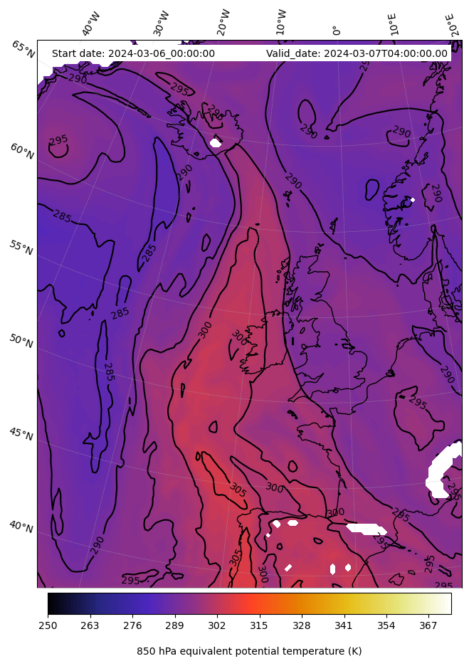 - Equivalent Potential Temperature (K)