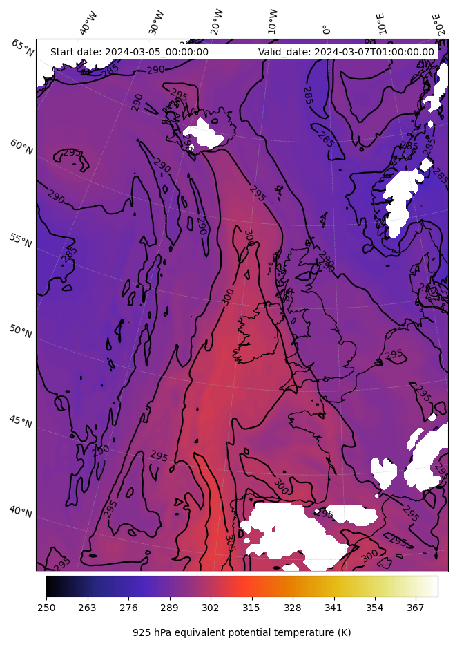 - Equivalent Potential Temperature (K)