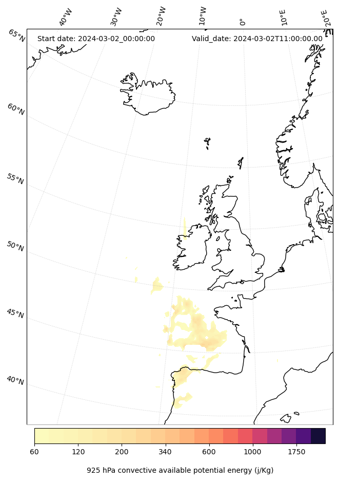 - Maximum CAPE (J/Kg)