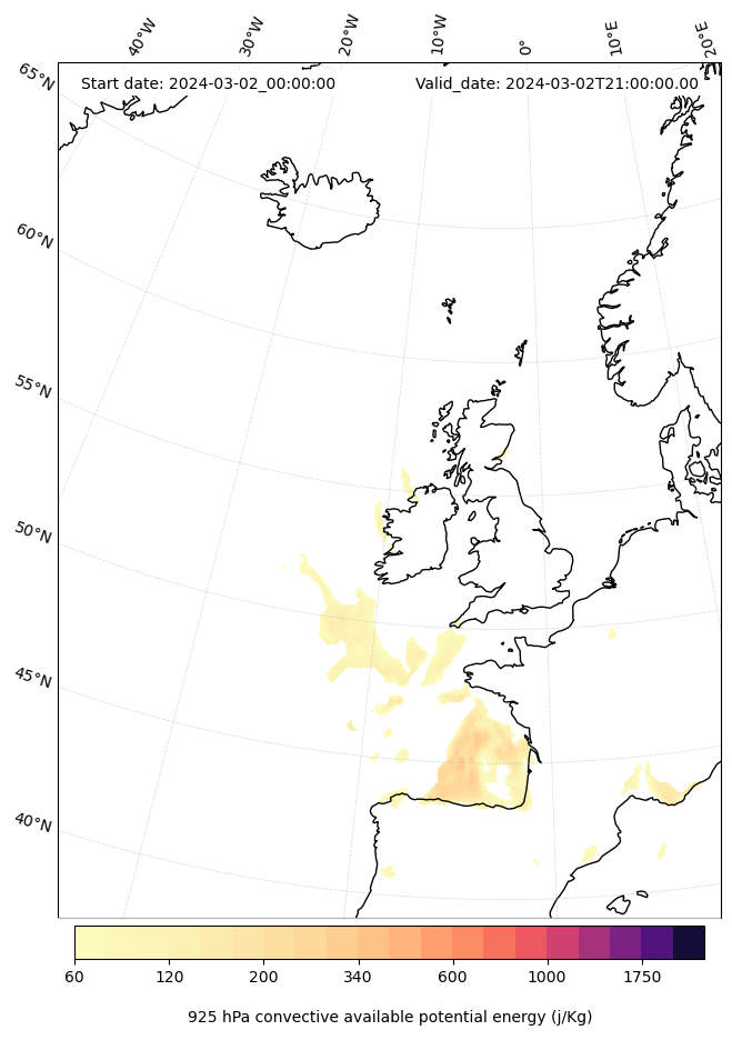 - Maximum CAPE (J/Kg)