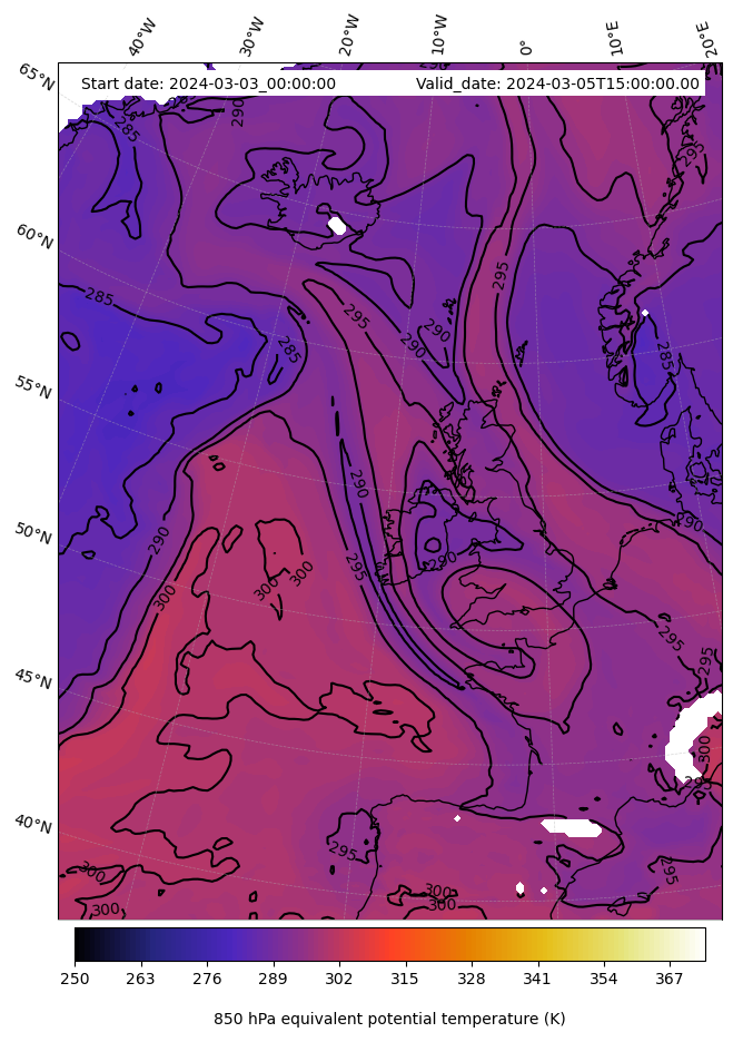 - Equivalent Potential Temperature (K)