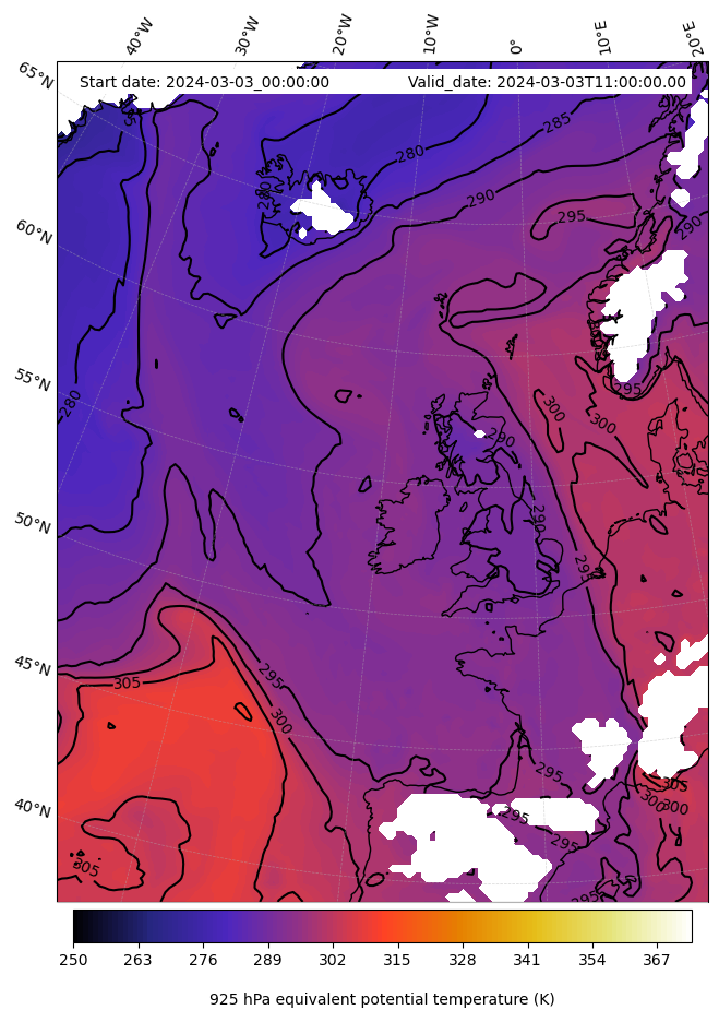 - Equivalent Potential Temperature (K)