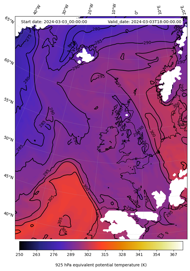 - Equivalent Potential Temperature (K)