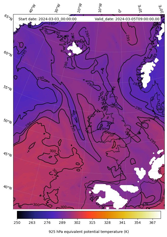 - Equivalent Potential Temperature (K)