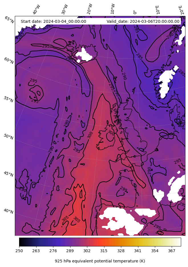 - Equivalent Potential Temperature (K)