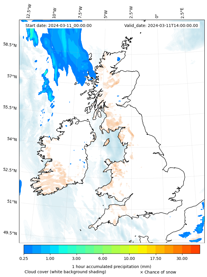 - Snow mixing ratio (g kg¯¹)