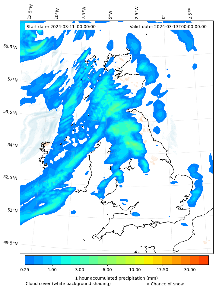 - Snow mixing ratio (g kg¯¹)