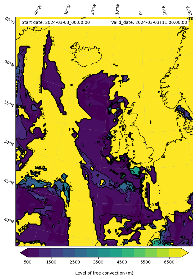 - Level of free convection (m)