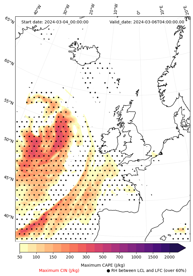 - Maximum CAPE (J/Kg)