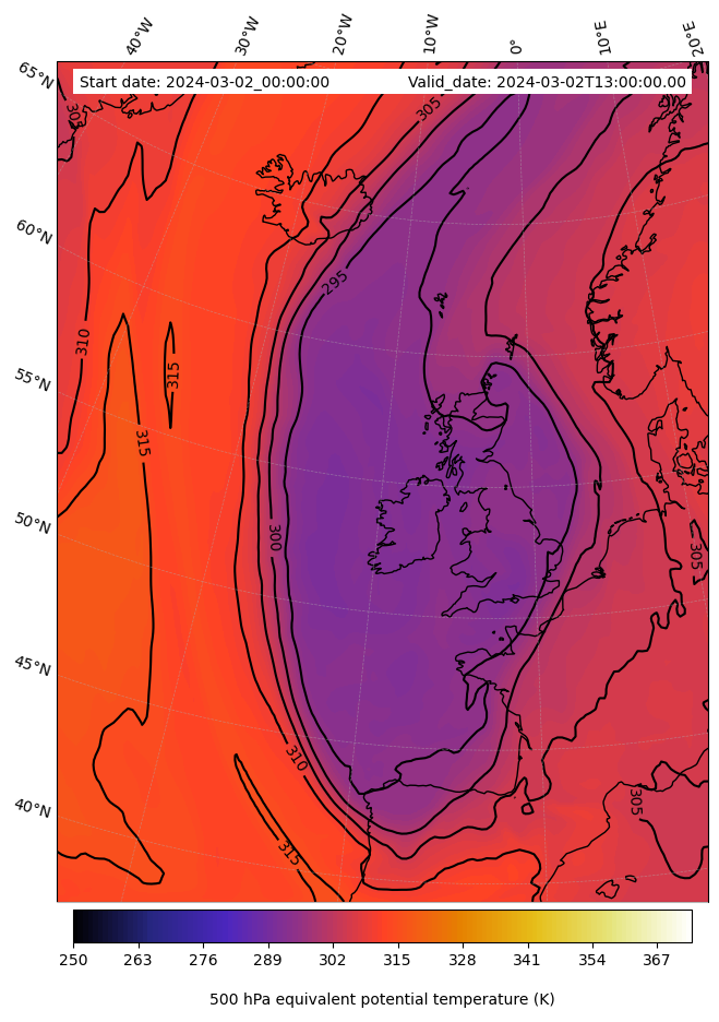 - Equivalent Potential Temperature (K)