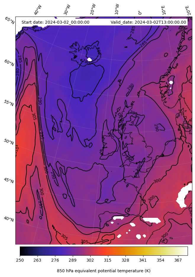 - Equivalent Potential Temperature (K)
