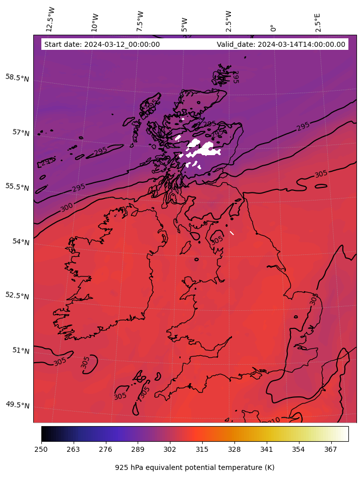 - Equivalent Potential Temperature (K)