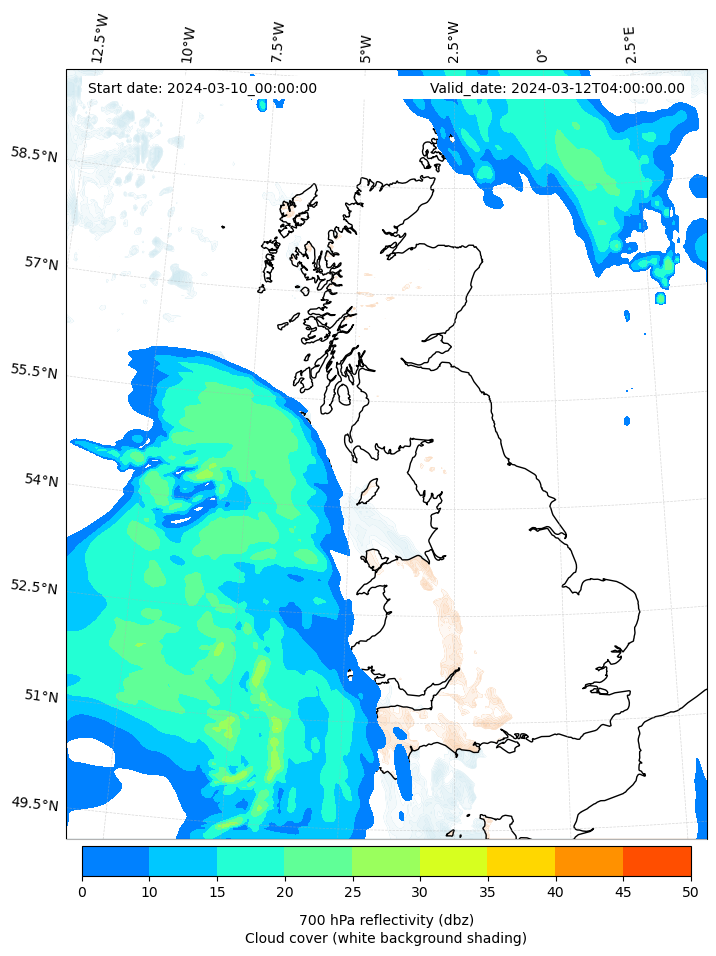 - Cloud water mixing ratio (g kg¯¹)