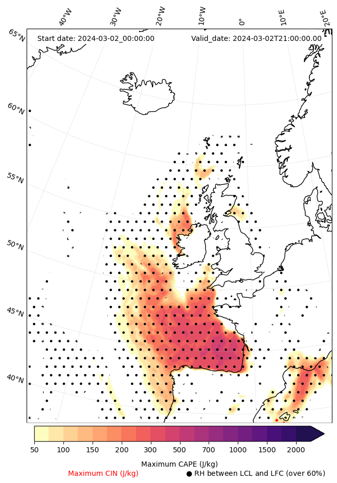 - Maximum CAPE (J/Kg)