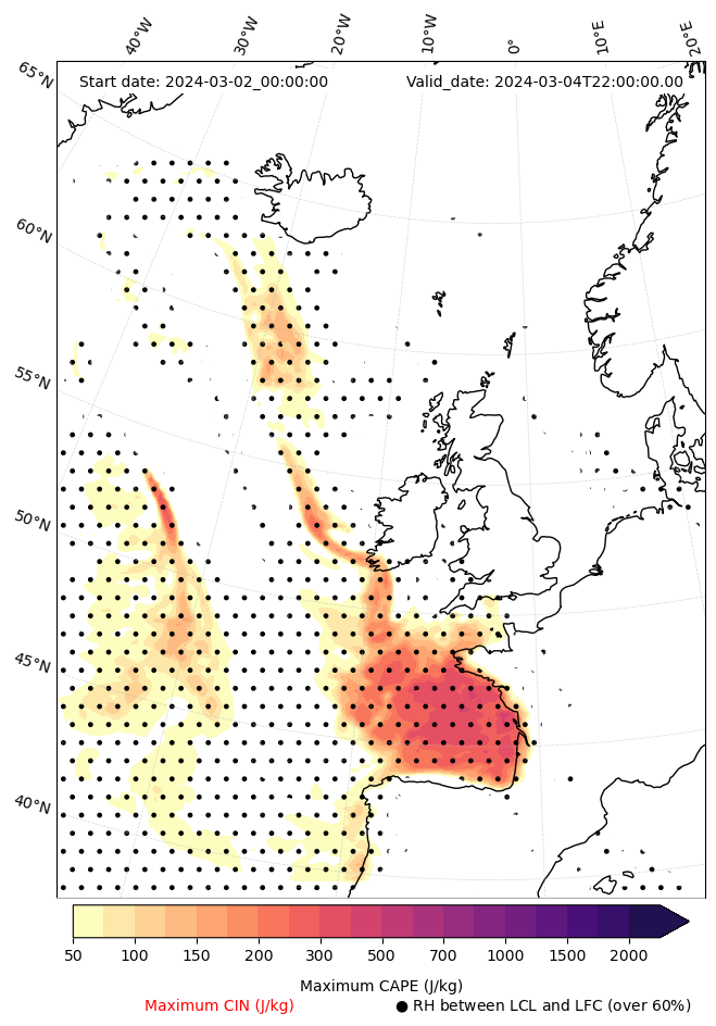 • Maximum CAPE (J/Kg)