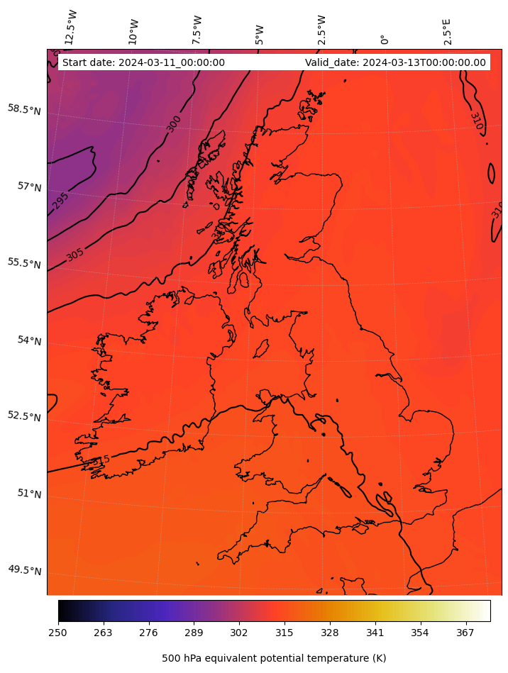 - Equivalent Potential Temperature (K)