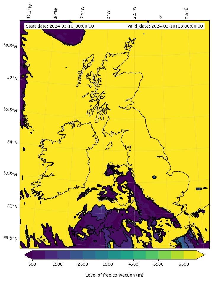 - Level of free convection (m)