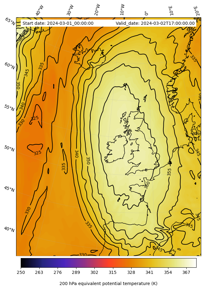 - Equivalent Potential Temperature (K)