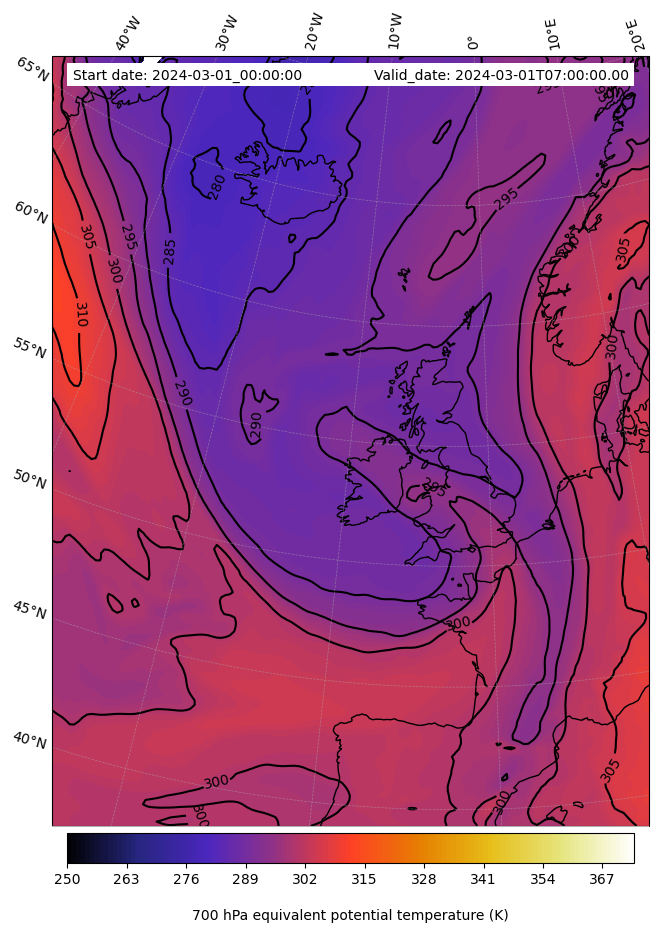 - Equivalent Potential Temperature (K)