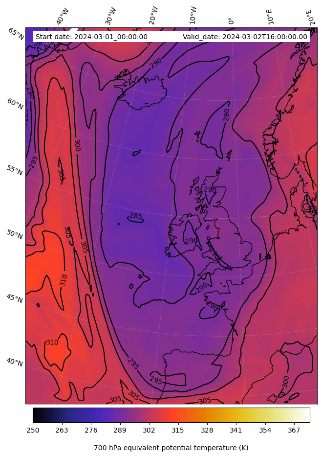 - Equivalent Potential Temperature (K)
