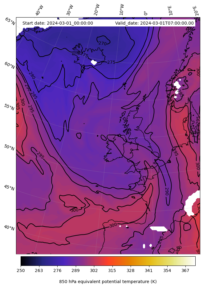 - Equivalent Potential Temperature (K)