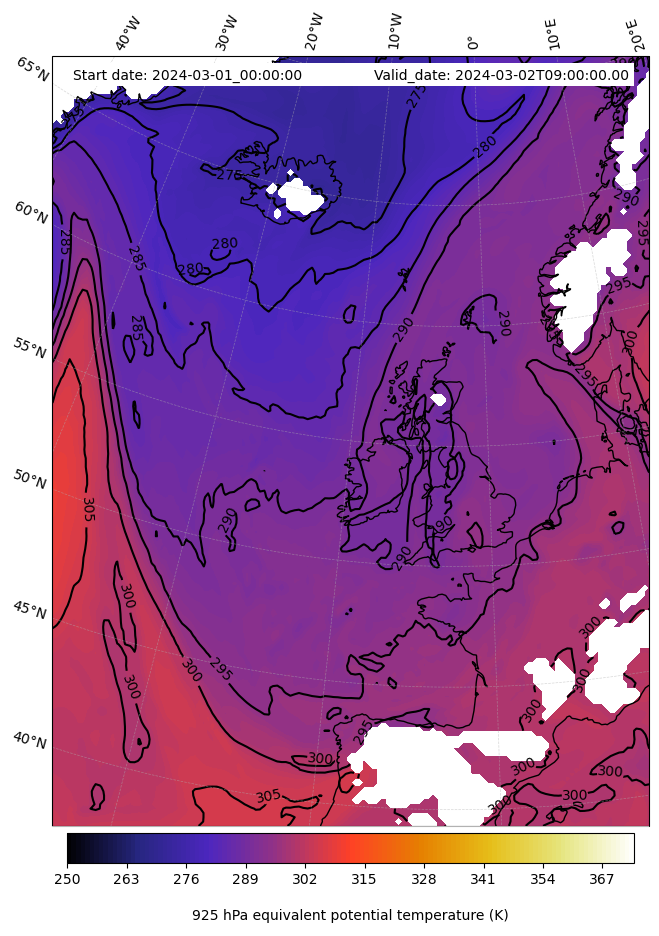 - Equivalent Potential Temperature (K)