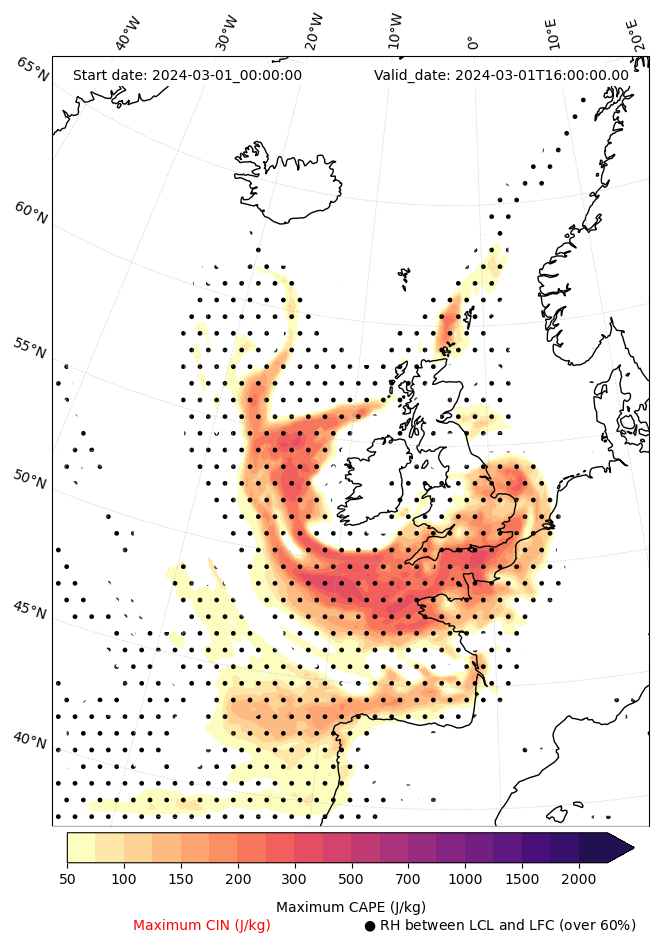 • Maximum CAPE (J/Kg)