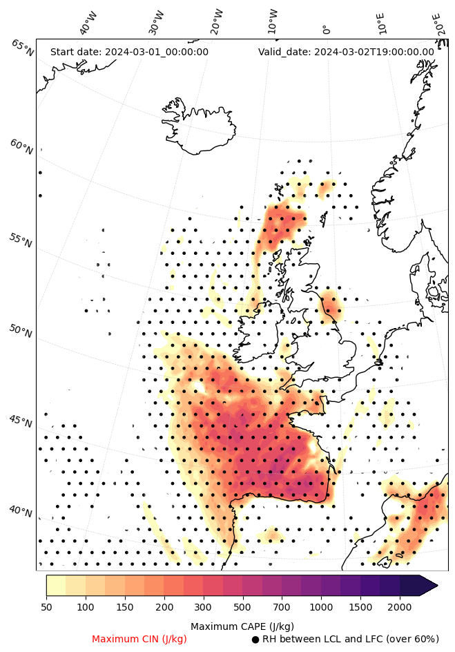 • Maximum CAPE (J/Kg)