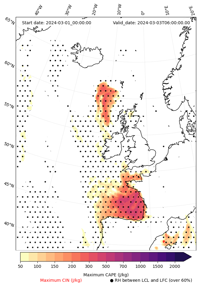 - Maximum CAPE (J/Kg)
