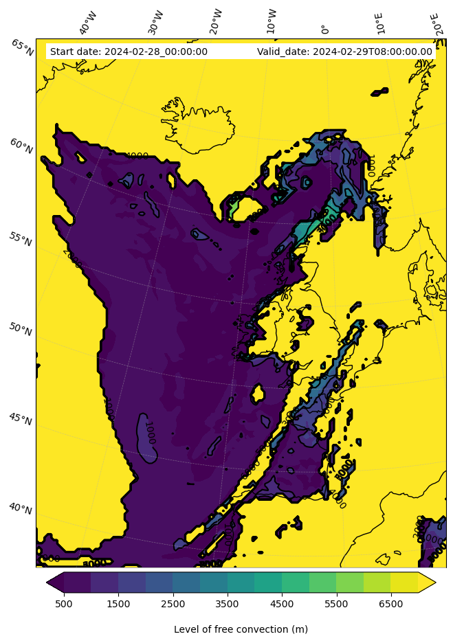 - Level of free convection (m)