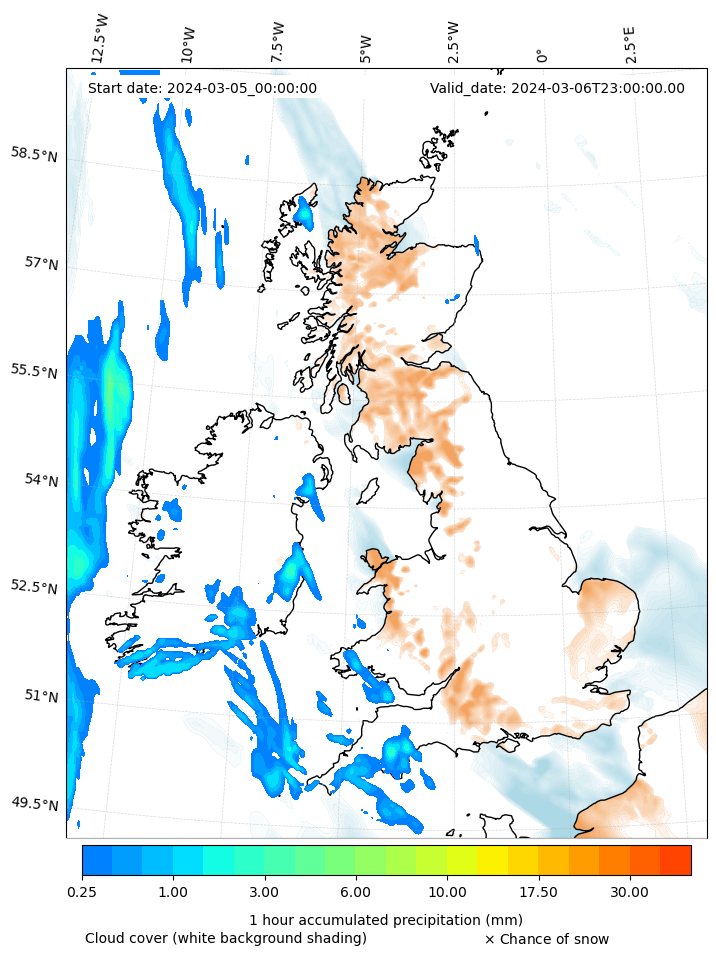 - Snow mixing ratio (g kg¯¹)